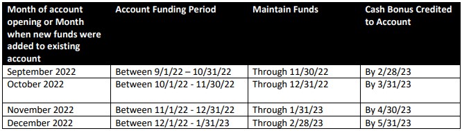 - Maintain the new funding through the end of the following month (or 3 months after the month of account enrollment).