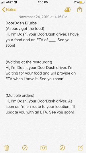 2. Communication is key! Every time I arrive at a restaurant for an order, I copy-paste the most relevant text message to the customer (I save them in Notes on my phone):