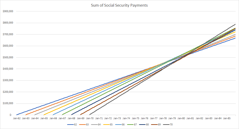 Deciding how long to wait depends on the various crossover points, right? If you sum up how much you’ve collected from Social Security, where does each group cross each other?