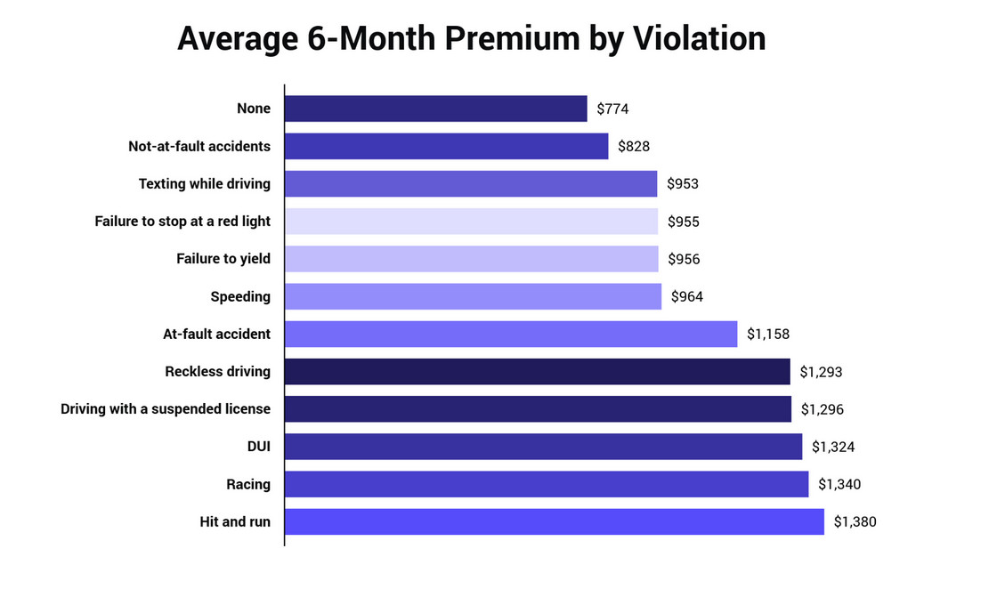 To keep premiums down you’ll need to avoid both moving violations and at-fault accidents in the future.