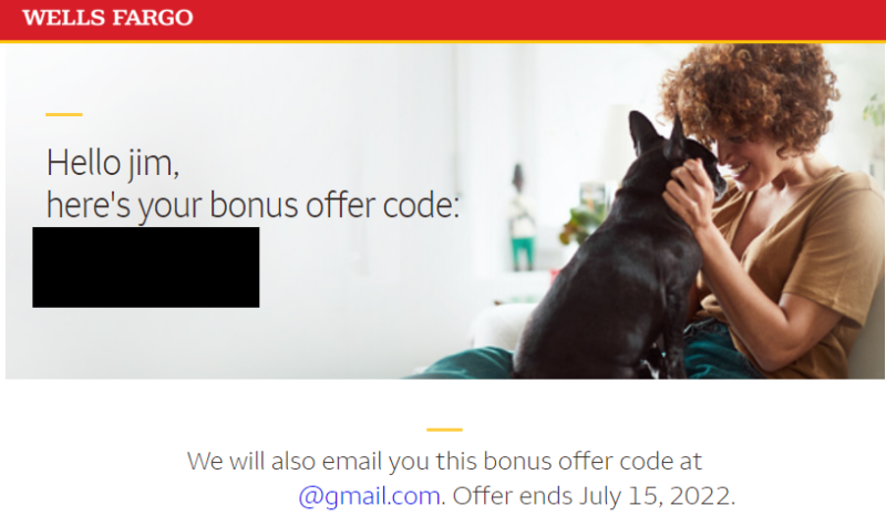 Just an FYI, I opened a Wells Fargo Everyday checking account at a local branch on March 28, 2022. I was emailed this code using the steps provided on this site, but they did not honor it When I opened my account. The banker at Wells Fargo said that because this bonus offer came from a 3rd party site and not directly from Wells Fargo that it was not legitimate.