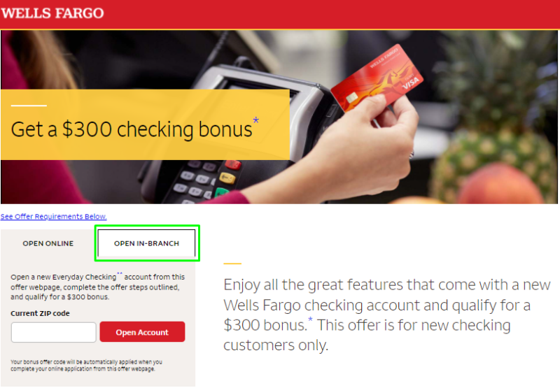 - Open a new Premier Checking account at a Wells Fargo branch with a minimum opening deposit of $25 by 4/1/2024. You must provide the bonus offer code to the banker at the time of account opening.