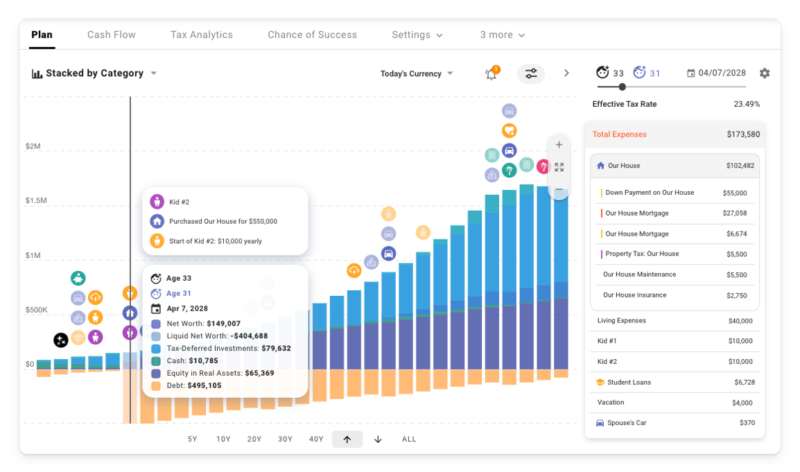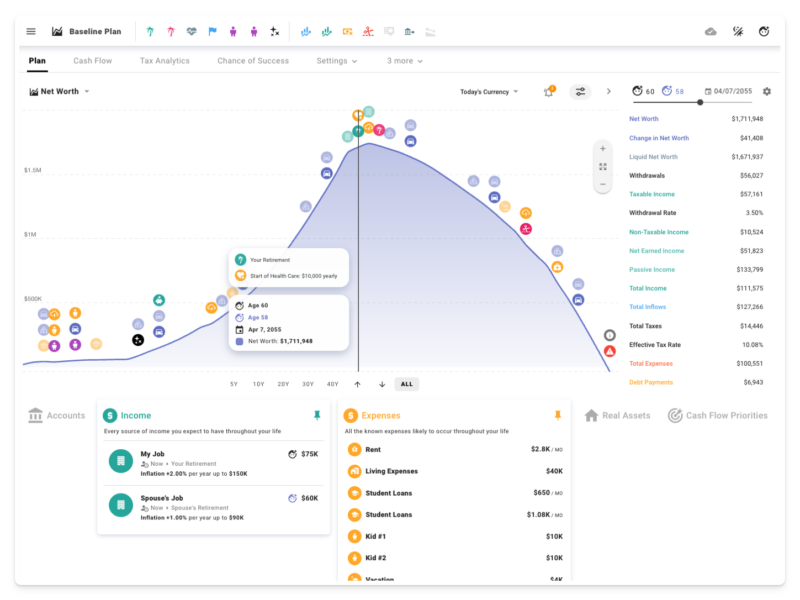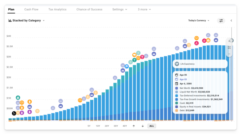 You can create beautiful financial plans with a level of nuance and flexibility that exceeds the standard online retirement calculators, run Monte Carlo simulations, backtest on historical data, review detailed analytics for estimated taxes, plan how to live life on your terms, and with some luck, reduce anxiety around your finances.