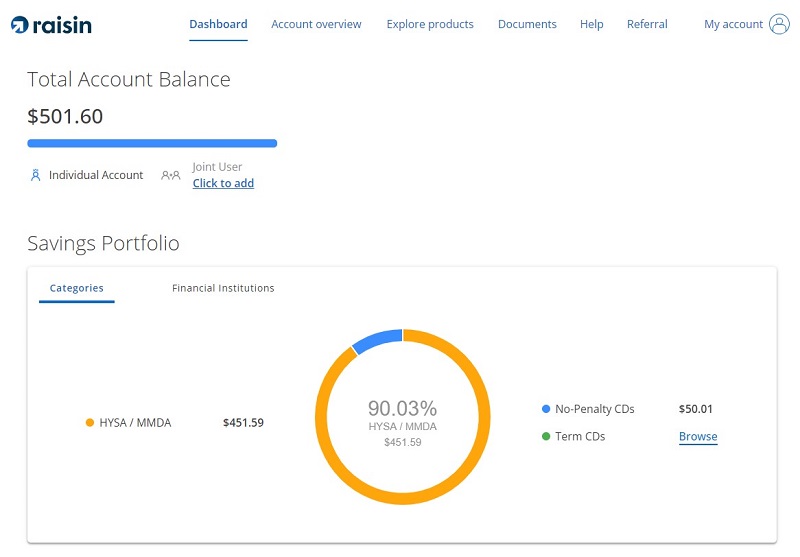 Raisin is a unique platform that helps you enjoy some of the highest savings account and CD rates. In addition, you only have to deposit $1 and won’t encounter any service fees.