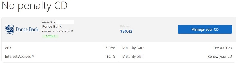 When I published this article, I opened a 4-month CD with Ponce Bank earning 5.06% APY. Approximately 30 days from its maturity date, Raisin sent me an email asking me what I wanted to do with the CD once it matured.