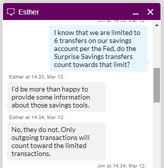 Surprise Savings transfers do not count towards the 6 ACH limit (the six transaction limit on savings accounts was rescinding on April 2020).