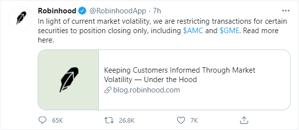I don’t want to get into some of the conspiracy theories as to why this happened (I think they’re mostly unfounded) but shortly thereafter, a lot of other brokerages did the same at the direction of their clearinghouse, Apex Clearing Corporation.