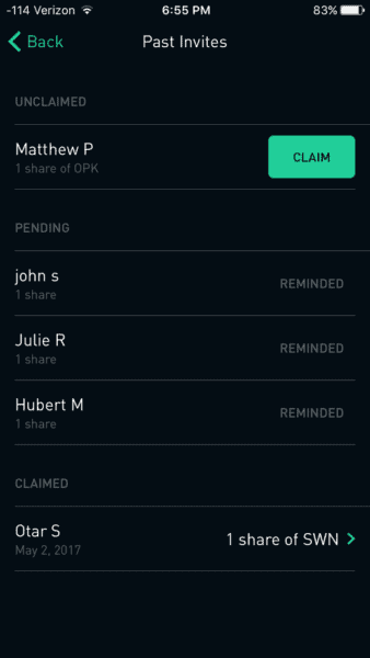 Once they open an account and transfer, you’ll see a notification on your phone. Click through to the person and claim your stock: