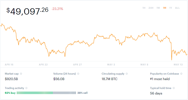 I took those screenshots in mid-May but a few days later, after a few tweets by Elon Musk and news about crypto in China, the price dropped even further to under $41,000 per coin! It’s a wild ride.