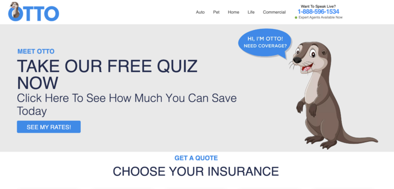 Otto claims to have helped over 10 million consumers find the best insurance rates. To obtain a quote, you’ll complete a “free quiz” rather than an application, as is typical of other insurance websites.