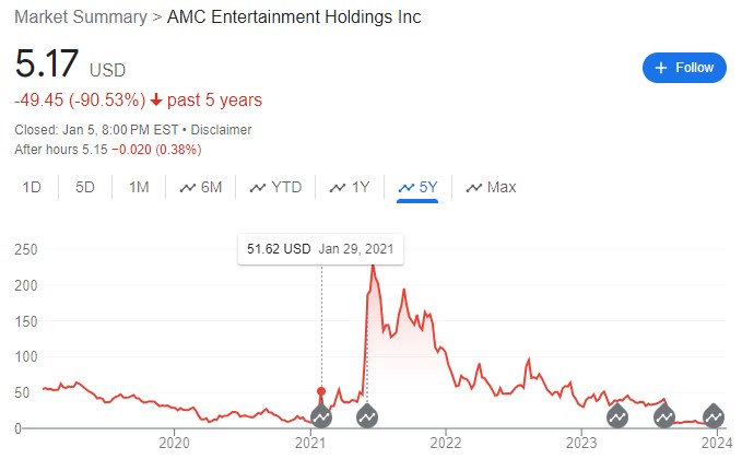 Remember, AMC was the darling of WallStreetBets when it was over $230 a share… it’s now just a few cents over $5. Ouch.