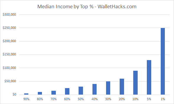 You say that earning $250k or more puts you in the Top 1%, but you also say the median income of the Top 1% is $250k, meaning half make less. So which is it? Is $250k the minimum income of the Top 1%, or is it their median?