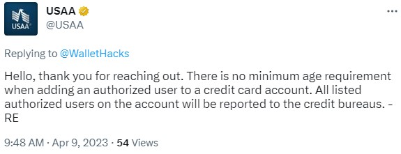 USAA is the best card to add authorized users because they have no age restrictions and report it to all the credit bureaus.
