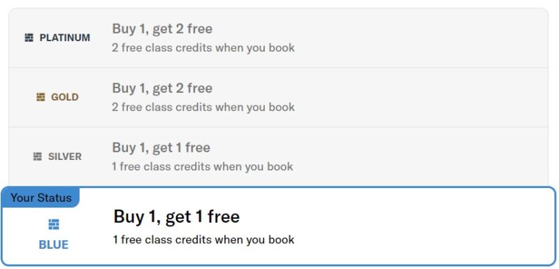 As part of Bilt Day, when you book an upcoming fitness class, you will get a complimentary class credit when you are in the Blue or Silver tier. Gold and Platinum Status members will get 2 free class credits per booking. You can use the free credit within 90 days of April 1st.