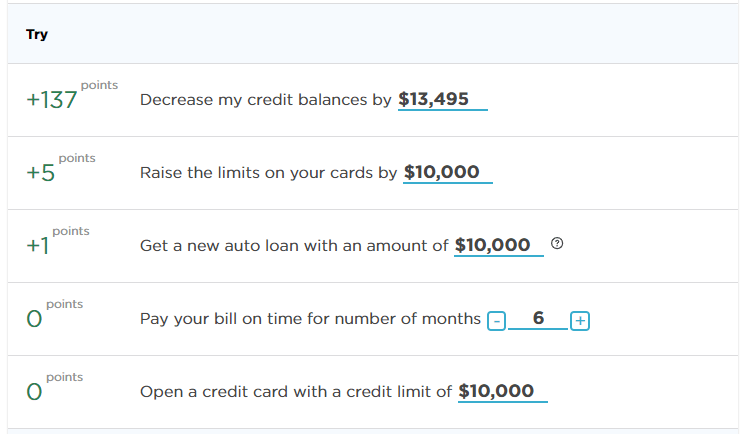 Let’s say you wanted to increase your credit score just for the sake of overall improvement of your personal finances. In that case, you’d probably be better off working on all of the action steps the simulator says will help you do that.