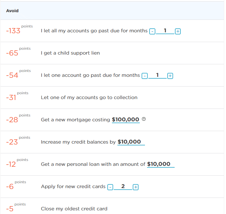 Conversely, here are some steps the credit score simulator showed would impact this person’s credit score negatively.