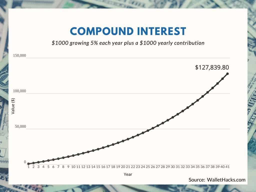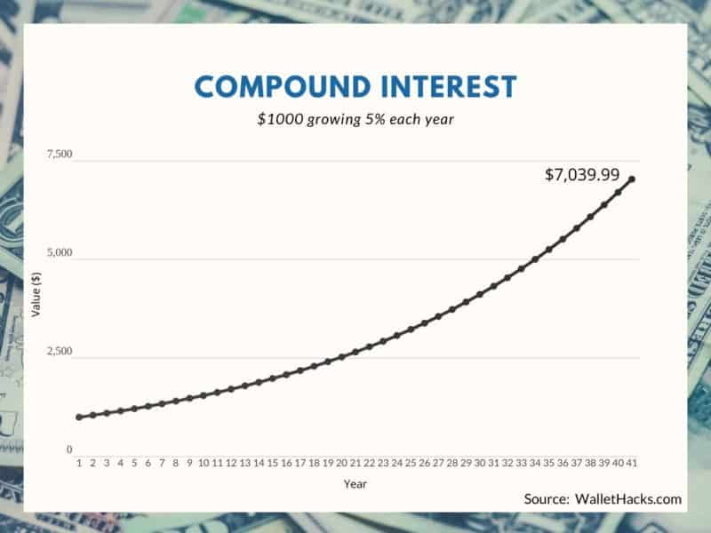 What does $1,000 look like when you give it a 5% compounding interest rate for forty years?