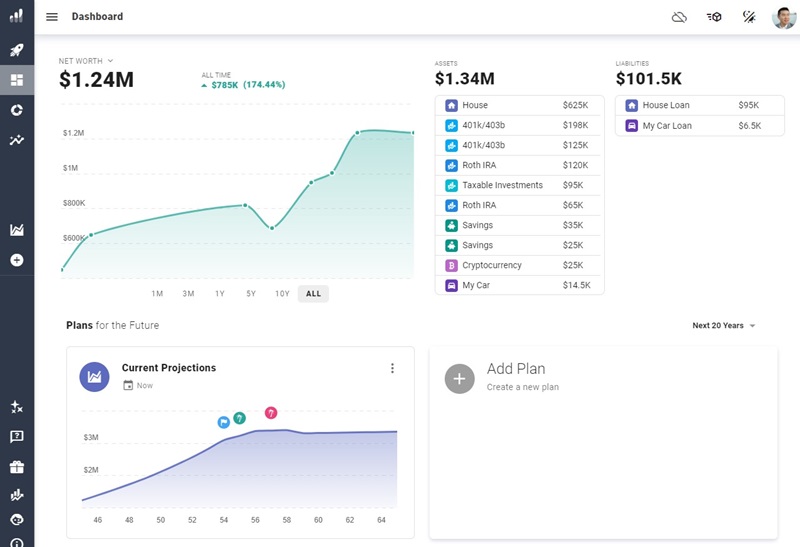 ProjectionLab is a paid tool with a free tier that lets you play with all of its features without having to enter in a credit card. You won’t be able to save your information though unless you upgrade to Premium ($9/month) or Pro ($45/month). Premium is what most regular people will use (Pro is for financial advisors or coaches).