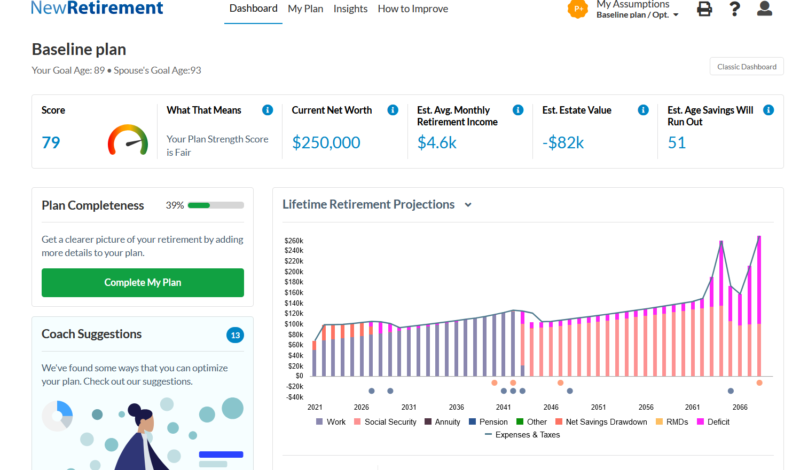 NewRetirement is a retirement planning and calculator service used by more than 130,000 people each month. Though it offers a free version, there also three premium plans, ranging in price from $96 to as much as $999 per year.
