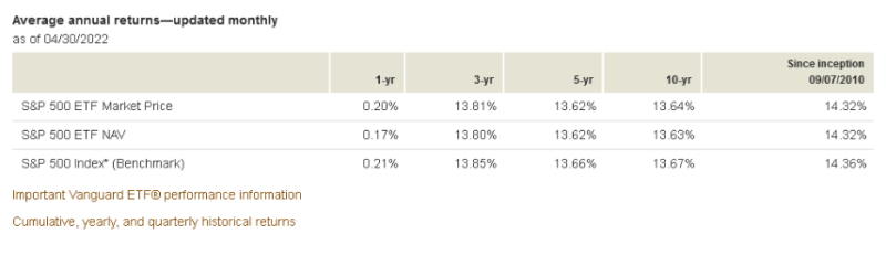 | Fund / Performance Period | FXIAX | VOO |