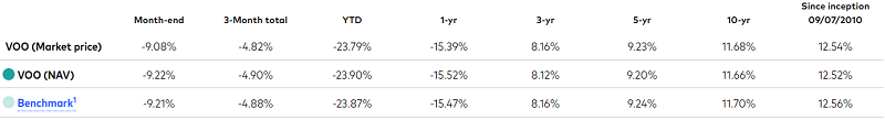 VOO is accurate through 9/30/2022 and SPY is accurate through 8/31/2022.