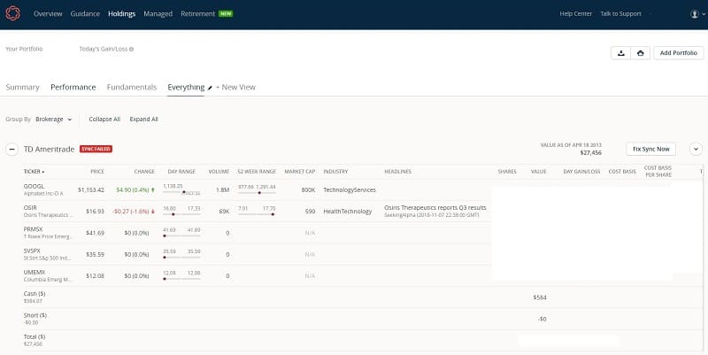 - Like Personal Capital, you sync your accounts and it loads up your portfolios automatically.