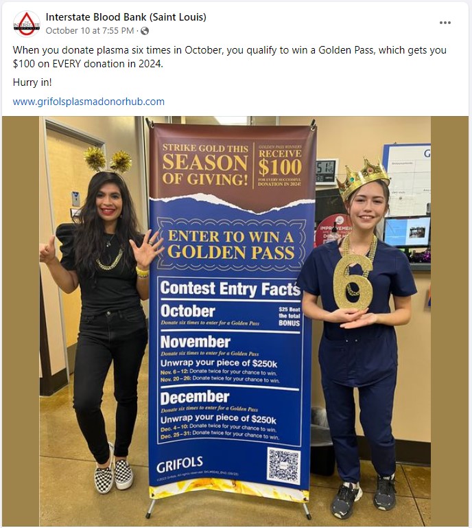This is before you consider any active promotions, which change periodically so talk to representatives at your local Grifols donation location for more information about collection and compensation.